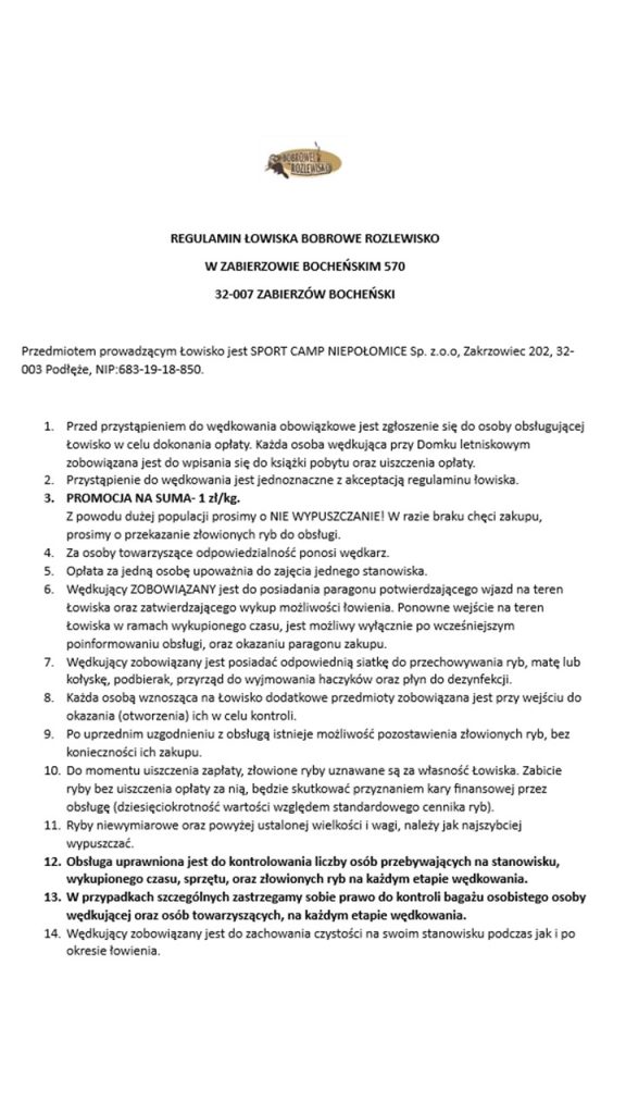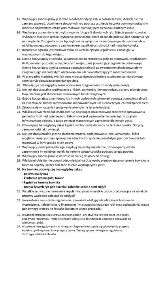 Poniżej przedstawiamy regulamin wędkowania na całym obiekcie!