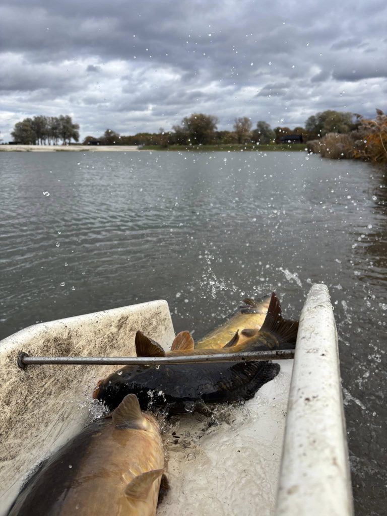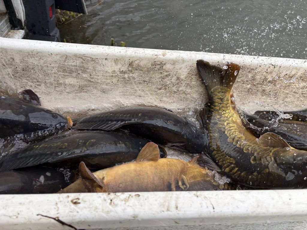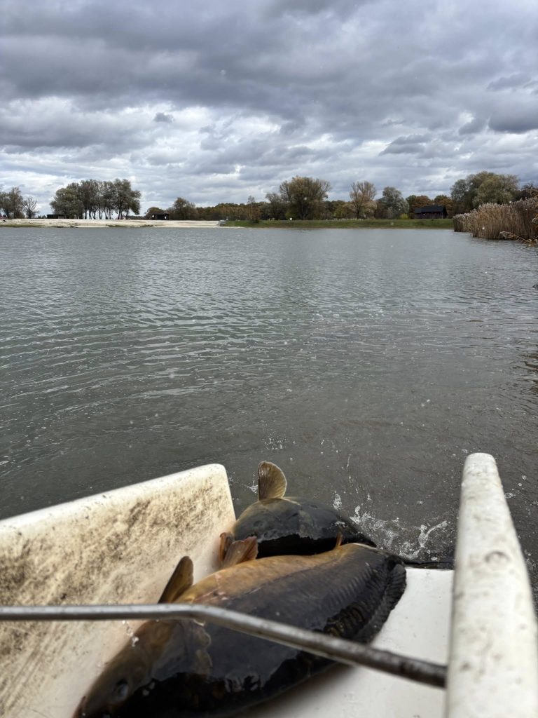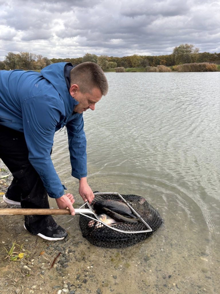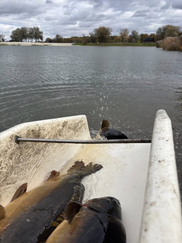 ZARYBIANIE DYŻY STAW JESIEŃ 2025 28 października 2025 / Dziś do naszego dużego stawu wpłynęło: Karp 700 kg Szczupak 150 kg Tołpyga 200 kg Proces przebiegł pod bacznym okiem Łabędzia Kazia, który witał nowe ryby. Dziękujemy Gospodarstwo Rybackie BUDY – Grzegorz Wójcicki za współpracę .